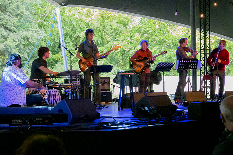 Oene van Geel en doedelzakspeler Fraser Filield (Lo-Landers). Het Zimbabwaanse Mokoomba sloot Music Meeting af.