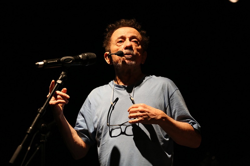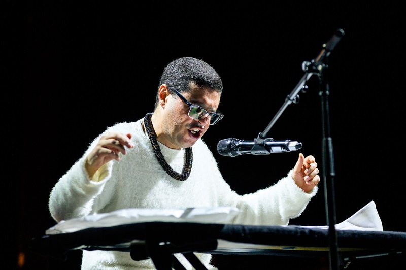 Het was vooral uitkijken naar Tom Zé, de man die meer dan zes decennia geleden mede de hele Braziliaanse scene een vernieuwend karakter bezorgde. Hij kwam naar Moers in gezelschap van drie begeleiders uit zijn vertrouwde entourage: Jarbas Mariz (gitaar, cavaquinho, percussie, vocals), Daniel Maia (gitaar, vocals) en Felipe Alves (bas, vocals). Zé blijft een fenomeen. Tweeëntachtig is hij ondertussen maar zijn jeugdig enthousiasme is onverminderd. Net geen uur hield hij de zaal in de ban als een heuse cabaretier. Ondanks zijn gebroken Engels ratelde hij alsmaar door tussen de nummers in. Een verkleedpartij en een goocheltruc met zijn gitaar hoorden bij het spektakel. Hij verafschuwt nog steeds elke format en dat stelde hij heel duidelijk door de ongrijpbare mengeling van samba, rock en muziektheater. Charmant verward over de hele lijn. Dat hij nog maar een drietal keer per jaar optreedt (waarvan dit de enige keer was in Europa voor 2019), maakte dit concert nog unieker.