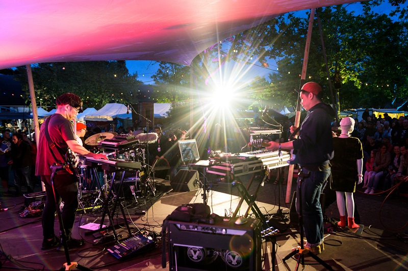 De hele stad wordt bij het festival betrokken. Zo hebben er optredens plaats in kerken, winkels, kantoren, historische gebouwen en op nog heel wat onverwachte plekken. Een OFF-luik dat een programma op zich vormt. Kiezen is hier verliezen. Het festivaldorp, vlak naast de concerthal, is het gedroomde alternatief voor wie er tegenop ziet zich ver te verplaatsen. Gezelligheid troef daar, mede door de gevarieerde eettentjes en de randanimatie. Middenin staat het openluchtpodium, de plaats bij uitstek voor ontdekkingen. De energieke afro-grooves van het Britse trio Vula Viel werkten aanstekelijk. Drum’n’bass’ à gogo op de ondertonen van een aangepaste gyil (een reuzexylofoon in hout uit West Ghana). Bassiste Ruth Goller (Acoustic Ladyland) klonk daarbij alsof ze jaren in een punkbandje gespeeld had.