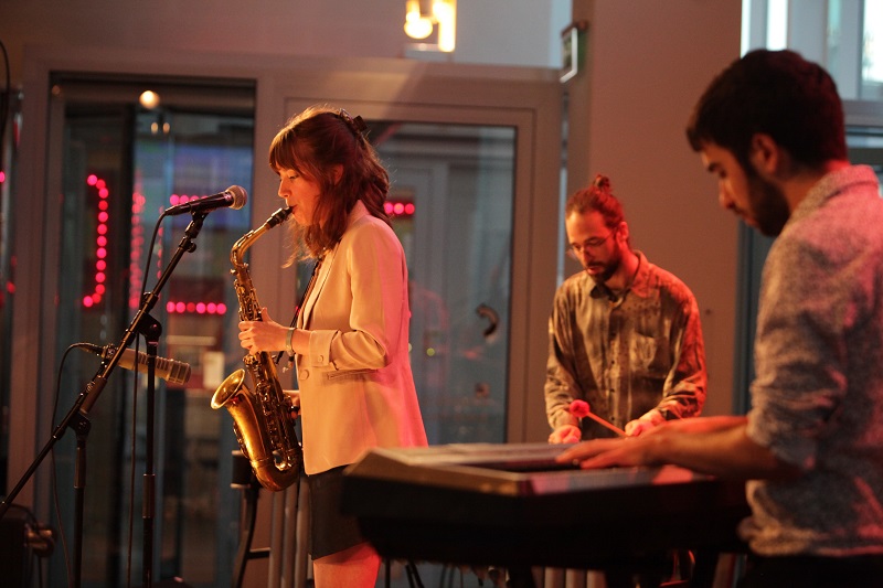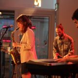 Saxofoniste Celia Swart van ensemble SWART.. Wietse Voermans (l) Quintet. Trompettist Ian Cleaver.