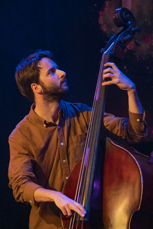 Contrabassist Tijs Claassen. Jeroen van Vliet en Koen Smits. Prashant Samlal Quartet.