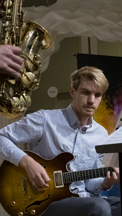 Gitarist Gijs Idema trad op met saxofonist Mo van der Does. Bigband Red Light Jazz Society. Fusionband Muddy Grease.