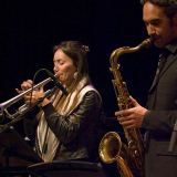 Sanne van Hek tijdens een gastoptreden bij The Ploctones in Bimhuis. Foto © Ger Koelemij.