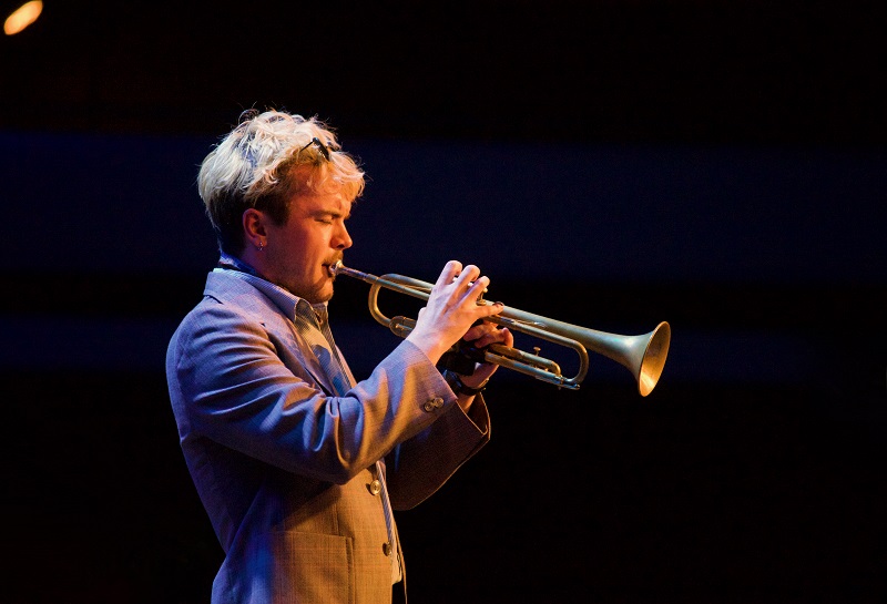 Trompettist Ian Cleaver en pianist Timothy Banchet werden geflankeerd door Engels, Herman en Cas Jiskoot op contrabas.