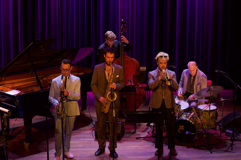 Hetzelfde sextet staat nu op het podium van zaal Cloud Nine in TivoliVredenburg, met een bezetting die er niet om liegt: zo bespeelt Ian Cleaver de trompet, Gideon Tazelaar de tenorsaxofoon, Timothy Banchet de piano en Cas Jiskoot de contrabas. Allemaal jonge honden, die als missie hebben de echte jazz nieuw leven in te blazen. Waar veel van hun collega’s zich verliezen in modieuze cross-overs is het hun missie de verworvenheden uit het verleden weer body and soul te geven. Krachtig is de opener ‘One For Johnny’, die het fameuze geluid van Art Blakey’s Jazz Messengers doet herleven. Een mooie start die de aanzet vormt voor geïnspireerde uitvoeringen van ander nieuw repertoire als ‘Danny’s Place’ en ’Missy Supa Nice’. Vooral pianist Banchet bewijst zich als componist van nieuw en fris klinkend repertoire met ouderwetse swing als anker.
