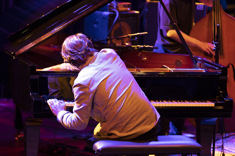 Ook de muziek klonk grillig met veel tempowisselingen. Alles draait bij dit trio om ritme en strak samenspel. Dat deed het verbluffend goed en met veel energie. Eldh is een bassist die veel inspiratie haalt uit hedendaagse grooves. Het is echter vooral drummer Maddren die de muziek opzweept. Downes speelt watervlugge, vrij atonale reeksen en doet dat op een ogenschijnlijk moeiteloze manier. Hier stonden drie uitstekende musici die elkaar blindelings vonden. Voor de luisteraar was elk nummer weer een nieuw avontuur, hoewel het door het wispelturige karakter van de muziek moeilijk was een aanknopingspunt te vinden, op een enkel thema na, zoals bij ‘Minus Monks’ of de cover ‘Castles Made Of Sand’ van Jimi Hendrix.