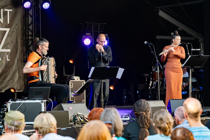Nog een gelegenheidsgroep en een wereldpremière in Dinant met Grégoire Maret en accordeonist Vincent Peirani samen met jonge fluitiste Elena Pinderhughes die reeds hoge ogen scoorde aan de zijde van Herbie Hancock en Esperanza Spalding. Drie muzikale goochelaars die de luchtverplaatsingen van hun respectievelijke instrumenten manipuleerden tot pure poëzie. Een uiterst lyrische namiddagstonde met enkele opzienbarende kortsluitingen tussen Peirani en Maret. Voor epicuristen met exquisiete smaak.