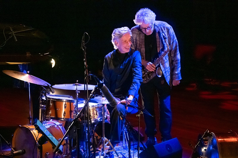 Onderonsje van drummer Makki van Engelen en saxofonist Frank Nielander. Braam met Peter Haex.
