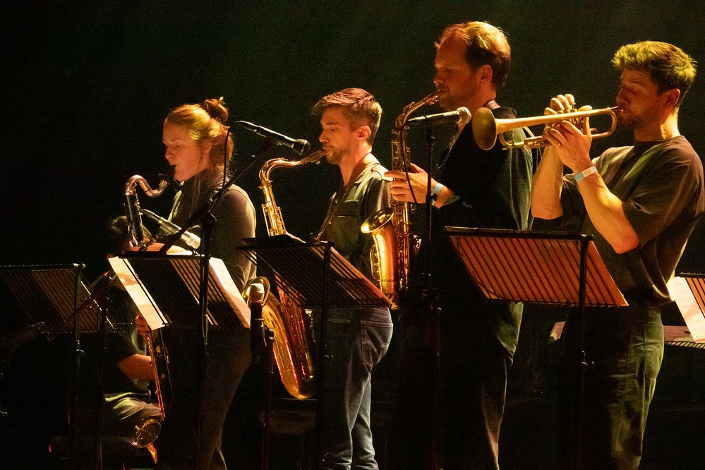 Het Jazz Orchestra of the Concertgebouw brengt een verrassend programma met de muziek van Misha Mengelberg. Het voelt onwennig aan om zijn tegendraadse muziek in een traditionele bigband bezetting te horen, maar de verbluffende solo van trompettist Ruud Breuls op ‘De Sprong, O Romantiek der Hazen’ blijft nog secondelang in de lucht hangen. Een hoogtepunt vormt vervolgens het optreden van Zack Lober’s NO FILLER’, voor de gelegenheid uitgebreid met tenorsaxofonist Jasper Blom. Met trompettist Suzan Veneman vormt hij een weergaloze frontline. Imponerend ook is contrabassist Lober’s onbegeleide solo op ‘Besame Mucho’ en de voortdurend verbindende percussie van Sun-Mi Hong. Een mooie afsluiter van de eerste avond vormt het melodieuze recital door saxofonist Tineke Postma en pianist Marc van Roon.