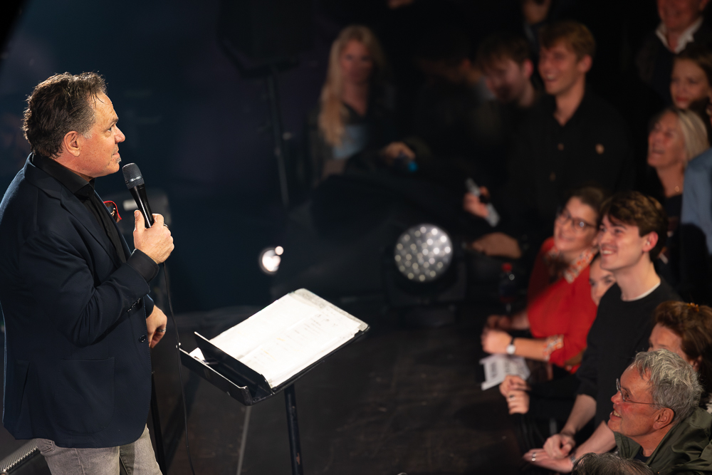 Elling is geen passant in dit repertoire. Hij dook eerder in de muziek van Zawinul, Pastorius en Shorter, zowel op plaat als op het podium. Hij is een zanger die niet over één nacht ijs gaat: hij bestudeert, analyseert en internaliseert. Soms blijft hij akelig dicht bij de originele solo’s, maar voegt daar eigen teksten aan toe: poëtisch, verhalend, en altijd met respect voor de bron. Met een omvangrijke map vol teksten kwam hij het podium op, een tastbaar bewijs van zijn grondige voorbereiding.