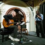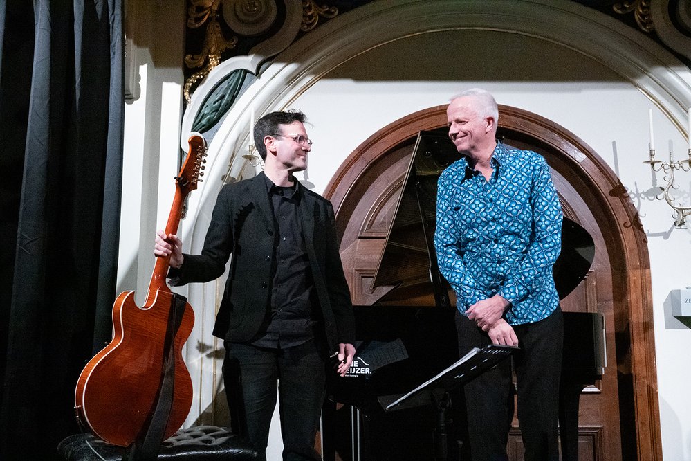 De laatste set was misschien wel de meest avontuurlijke, met Gerard Kleijn op trompet en flugelhorn en de Argentijnse gitarist Guillermo Celano. Kleijn, een veelgevraagd trompettist en componist, maakte vijftien cd’s als bandleider en werkte internationaal, van Europa tot Mexico en de Verenigde Staten. Celano, geboren in Buenos Aires, is een gelauwerd gitarist en componist die in 2013 de North Sea Jazz compositieopdracht ontving. Hun muziek draait niet om solistische pareltjes, maar om het neerzetten van een verhaal, een sfeer. Vaak putten ze uit materiaal van hun album ‘Birds on a Wire’, maar ook een standard als Piazzolla’s ‘Oblivion’ kreeg een eigenzinnige invulling. Het indrukwekkendste moment was ‘Choral Works on Titan’, een compositie van Celano, waarin de geluidseffecten van zijn gitaar in de prachtig galmende Hillegondakerk tot een bijna bedwelmend resultaat leidden.