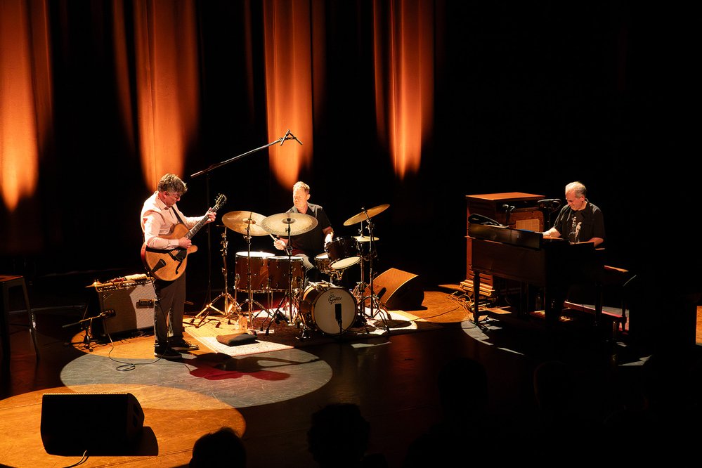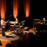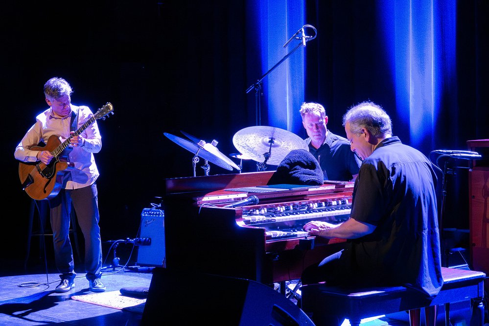 Gitarist Peter Bernstein, slagwerker Bill Stewart en Larry Goldings achter de Hammond in het Rotterdamse podium LantarenVenster.