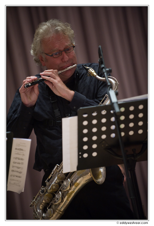 Dick de Graaf is wellicht de belichaming van het avontuur, de durf en de veelzijdigheid die het Clazz Ensemble uitstraalt. Foto © Eddy Westveer.